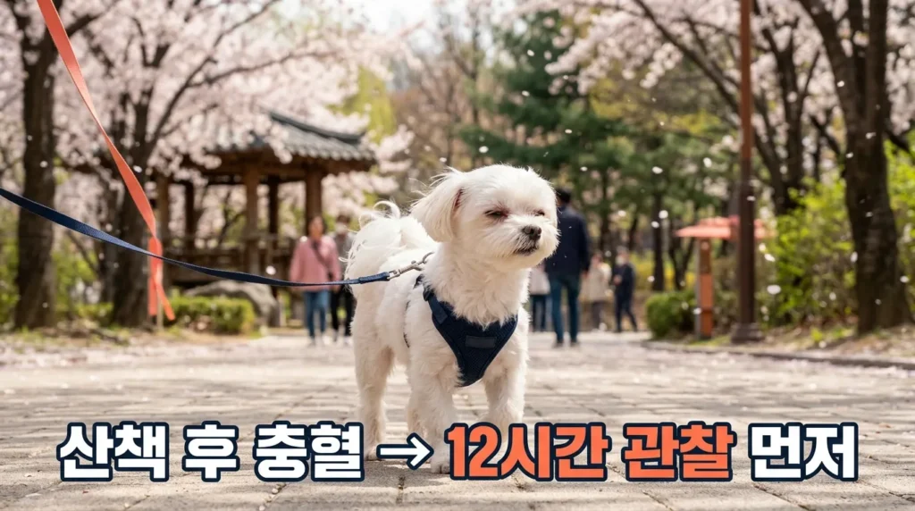📌 핵심: 산책 직후 단순 충혈은 12시간 관찰 후 개선되면 정상 범위예요.