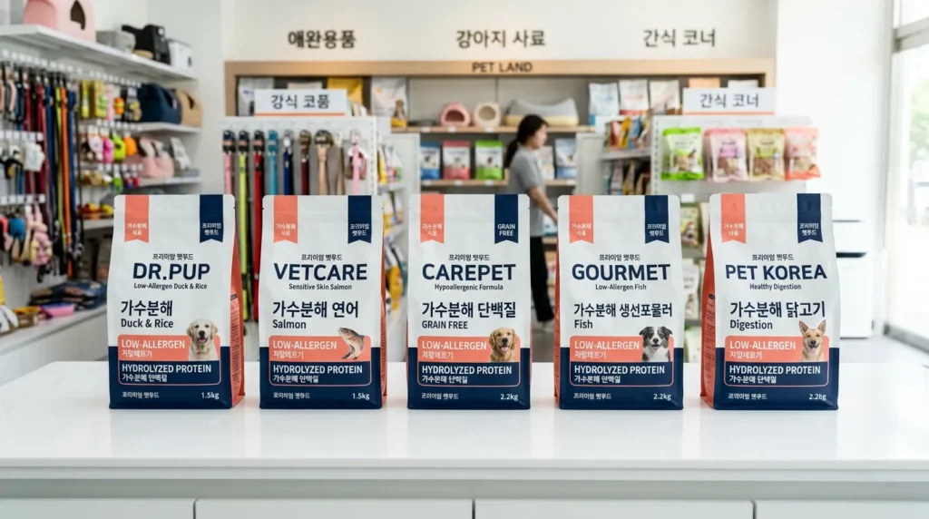 A. 가수분해 단백질 기반에 닭·밀·옥수수 미함유 제품이 효과적이에요. 로얄캐닌 하이포알러제닉, 힐스 z/d는 처방 사료로 수의사 상담 후 선택하고, 원스·마스터크래프트 연어는 일반 구매가 가능해요.